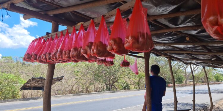 Los comerciantes de jocotes año con año aprovechan 4 meses del año para vender jocotes, instalándose a la orilla de la carretera que de Usulután conduce a San Miguel.