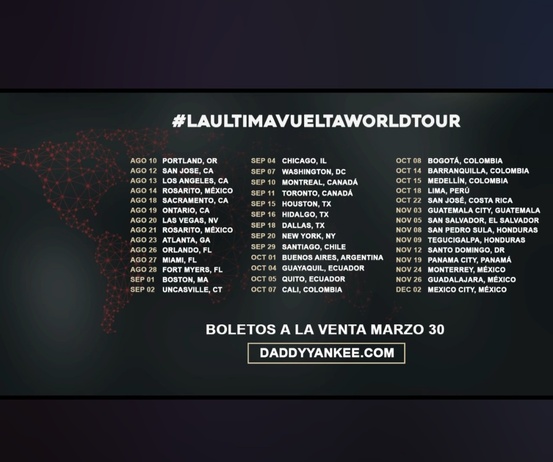La gira llevará el nombre “La última vuelta” y estará en países como Estados Unidos, México, Canadá, Argentina, Ecuador, Colombia, Panamá, Honduras, Perú, El Salvador, entre otros.