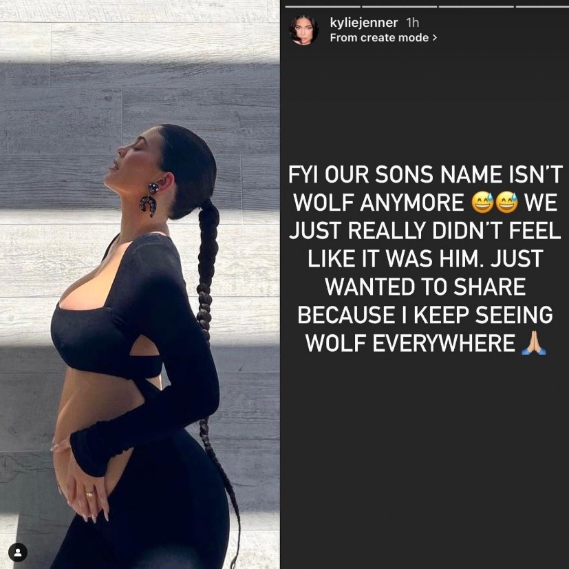 Así lo ha desvelado la pequeña del clan Kardashian, de 24 años, en uno de sus stories de Instagram. “El nombre de nuestro hijo ya no es Wolf. Realmente no sentíamos que fuera él. Quería compartirlo porque sigo viendo a Wolf por todas partes”, ha escrito para sus más de 320 millones de seguidores.