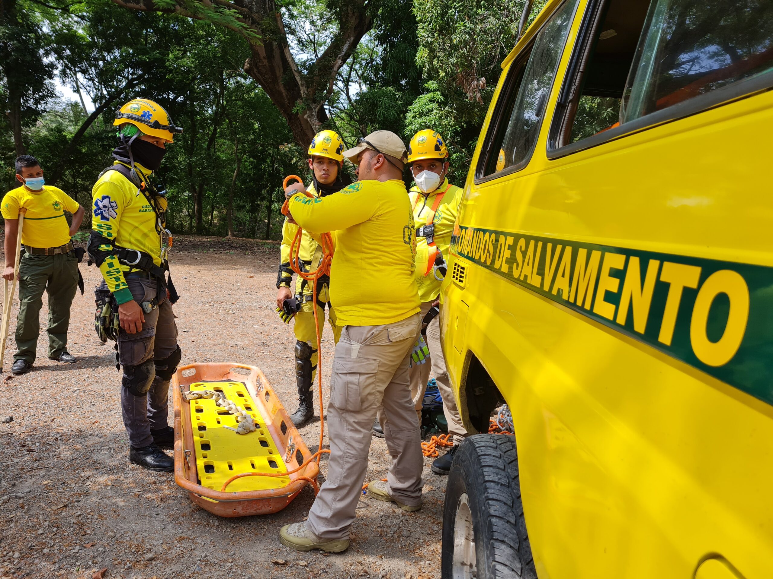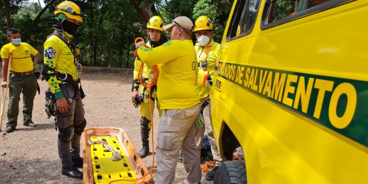 Fue así un simulacro que realizó elementos de comandos de Salvamento de las diferentes filiales de la zona oriental del país a la altura del desvio a Jucuapa sobre la carretera Panamericana.