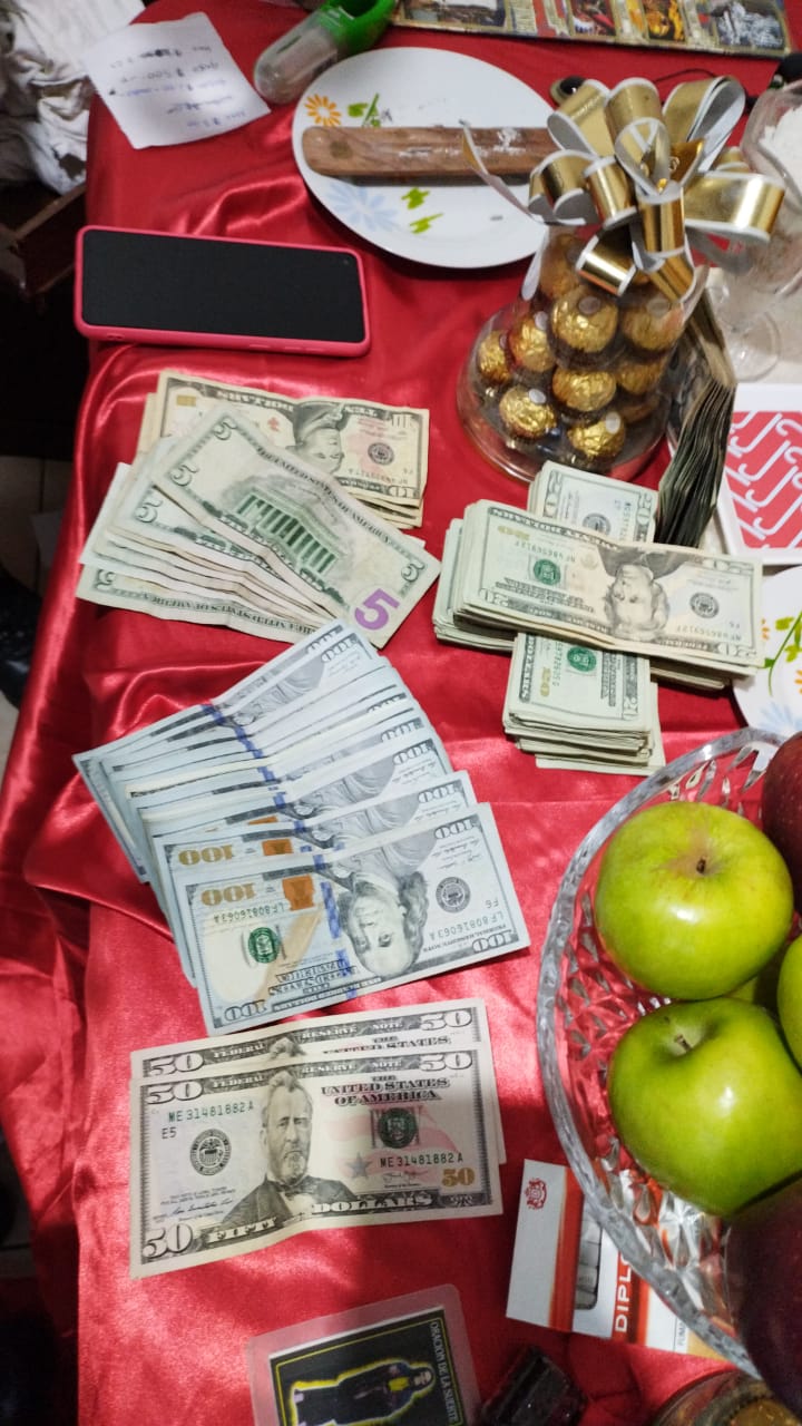 Durante la intervención las autoridades le incautaron US$6,920,00. en efectivo, 3 teléfonos celulares y un cuaderno en el cual detallaban el alias de los miembros de la pandilla y cantidades de dinero pendientes de cobrar.