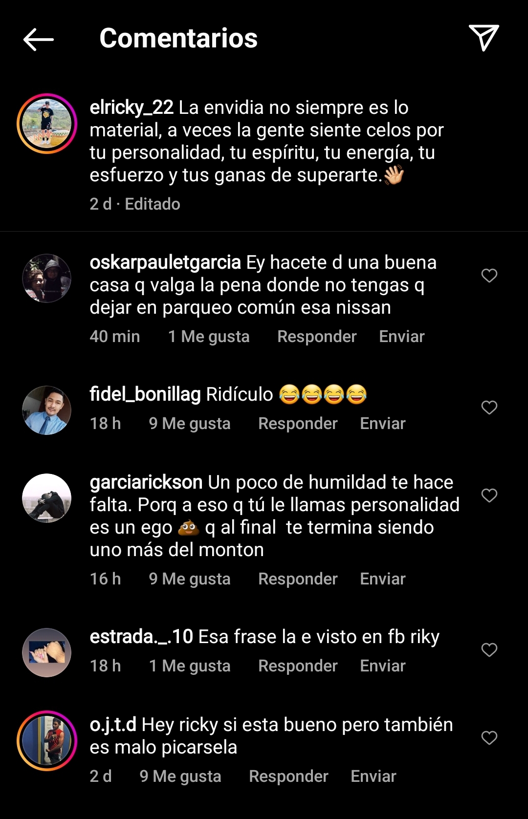 Los comentarios de sus seguidores no se hicieron esperar “ey hacete de una buena casa que valga la pena, donde no tengas que dejar en parqueo común esa nissan” “ridículo” “un poco de humildad te hace falta”.