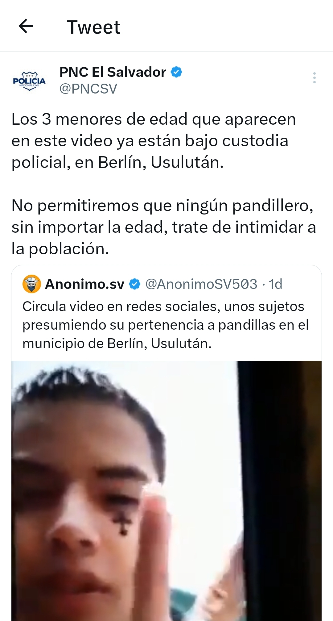 En redes sociales círculó un video en donde se observa a 3 menores de edad realizar señales alusivas a pandillas, según la publicación eran residentes del municipios en Berlín, Usulután.