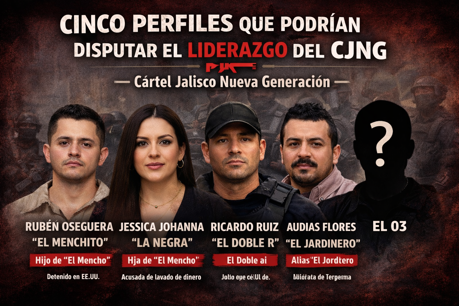 🔹 Rubén Oseguera González, alias “El Menchito”. Hijo de Nemesio Oseguera Cervantes, considerado durante años el segundo al mando. Actualmente enfrenta procesos judiciales en Estados Unidos.