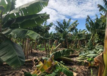 Productores de plátanos en Jiquilisco, Usulután reportan pérdidas considerables en sus cultivos por tormenta.